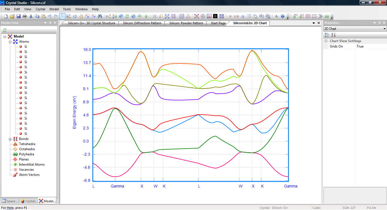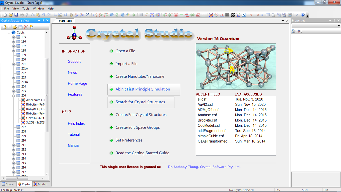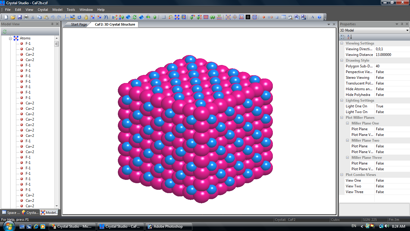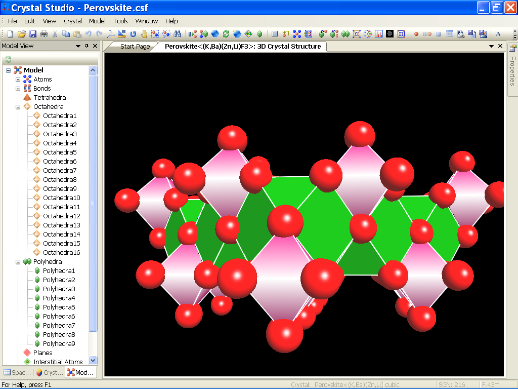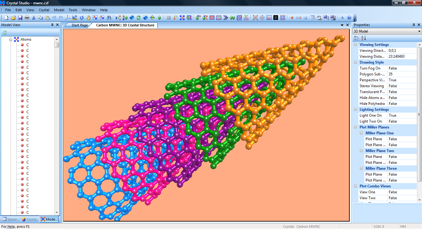 The 3D Crystal View with the "Model View" tree view on the left and the "Property Window" on the right.