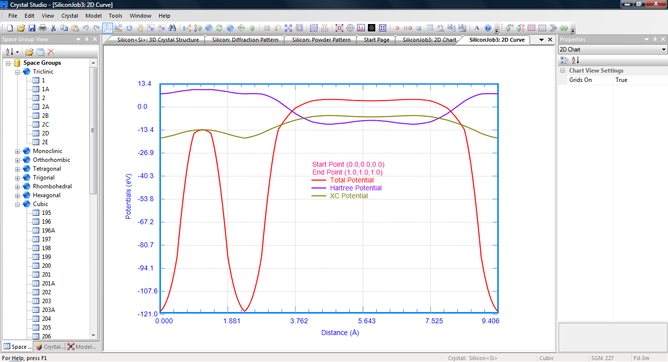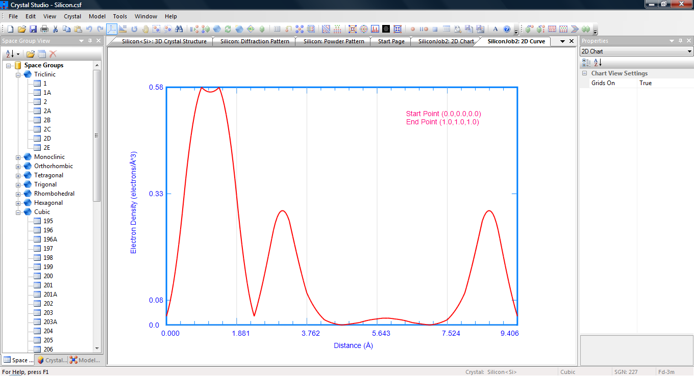 Abinit Chart View: Line Distribution of Electron Density of Silicon.