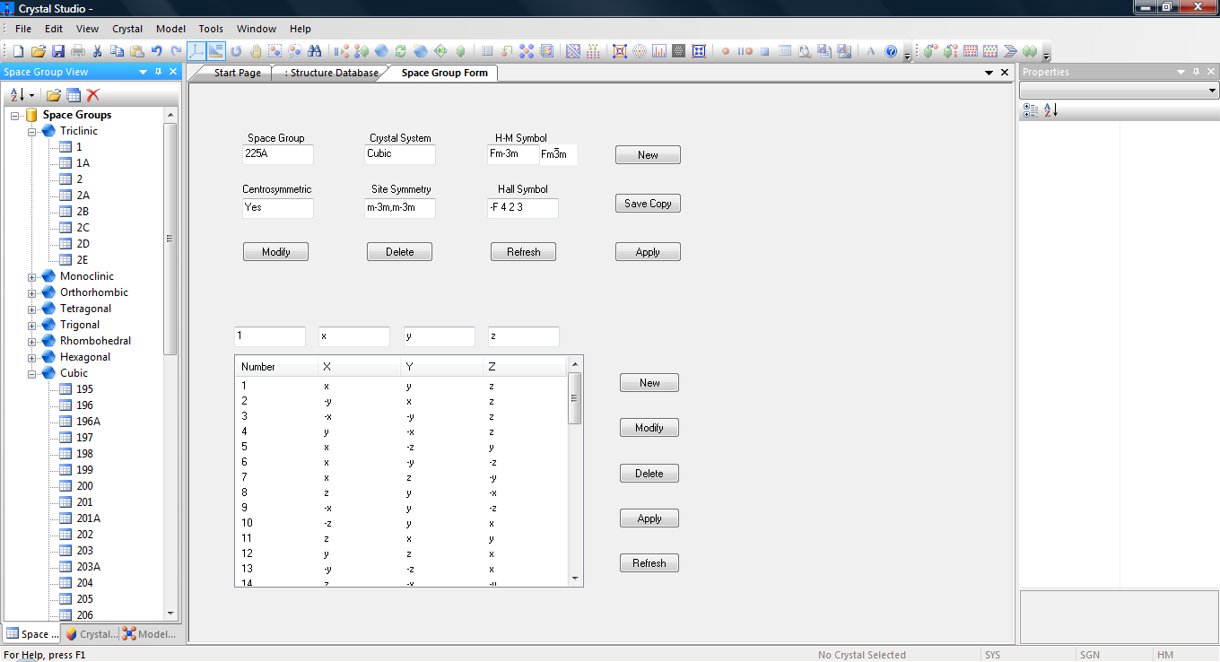 The Crystal Structure Form View with the "Crystal Structure View" tree view on the left.